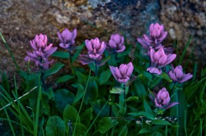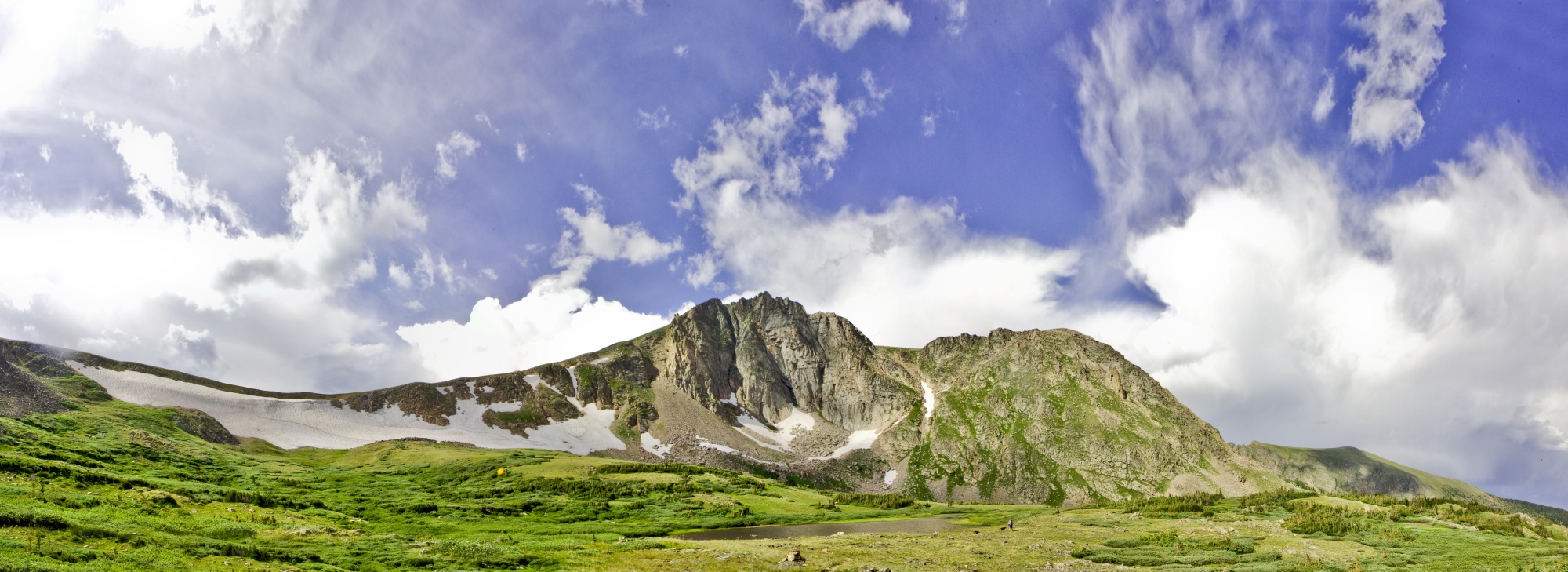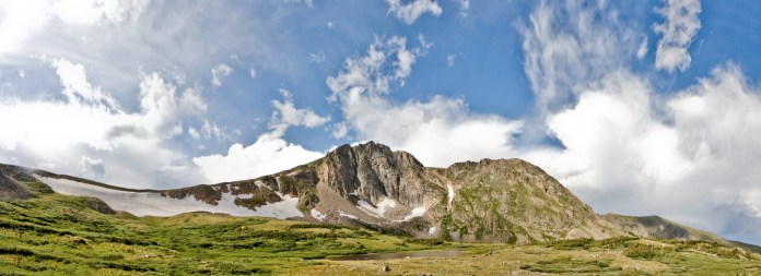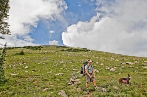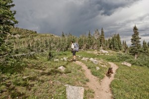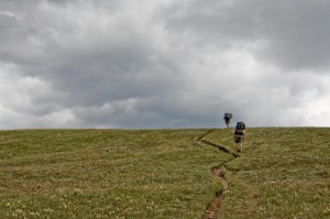 about five or six miles in, and many thousands of feet of gained elevation, we came to a high alpine meadow. it was late in the afternoon – the worst time in the mountains to be above tree line. summer storms are almost daily at these high elevations, and tend to involve lightning and violent winds. so we pushed hard as the wind picked up. we crested the divide before the worst of the storm, and we made camp just as dusk arrived.