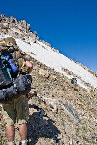 we comforted ourselves that night with the knowledge that tomorrow would be easy. just a few miles of hard elevation gain, but then we’d be done by lunch. our planned campsite was to be at high elevation, near fourth of july mine. we would have the afternoon to take a side-hike to a nearby glacier if we wanted. it sounded intriguing.