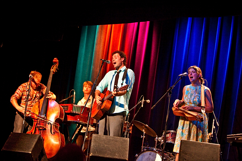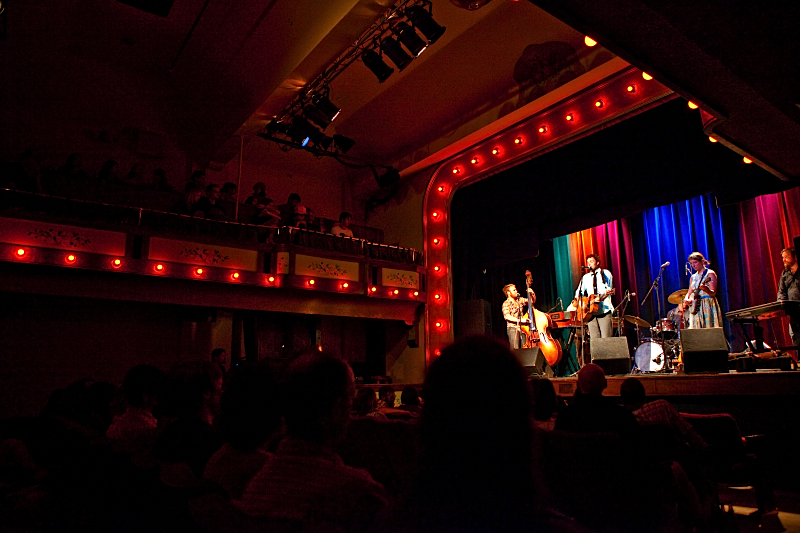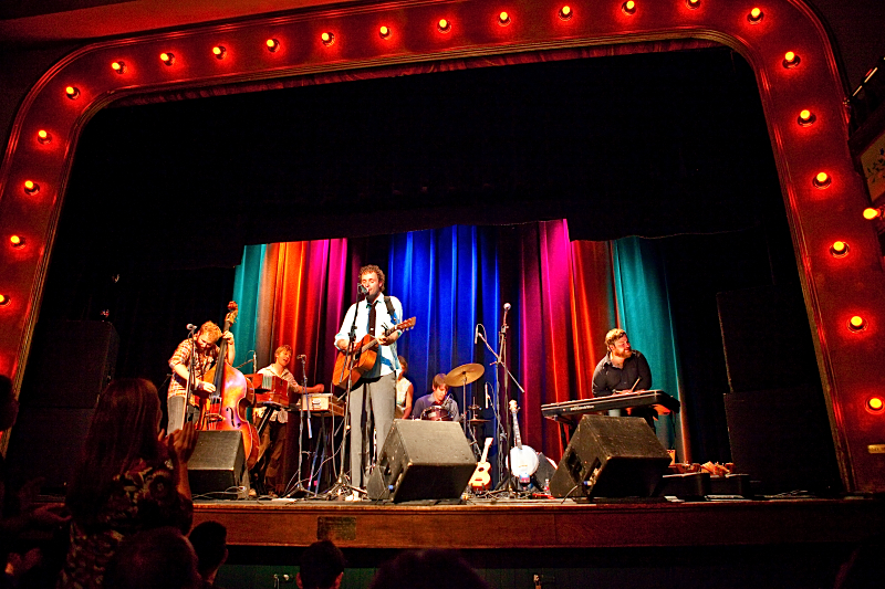 well, much to our surprise, walking around town our first night in telluride, we noticed a concert poster at wizard stating that blind pilot was in town and playing tuesday night at the sheridan opera house, a fantastically intimate, historical venue.
