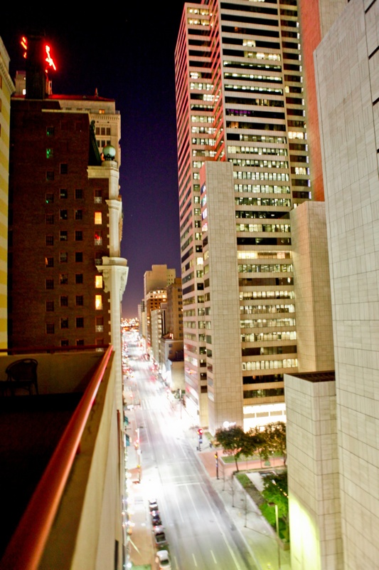 the night of our marriage, elle and i got to stay at the historic adolphus hotel in downtown dallas. totally cool. and a great view from our enormous balcony!