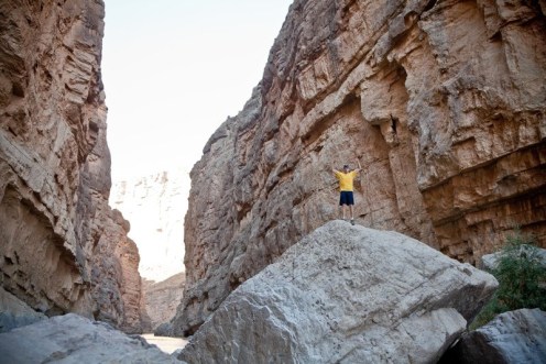 we hiked our way through the desert. soon the trail funnels it’s way into a small, dark canyon.