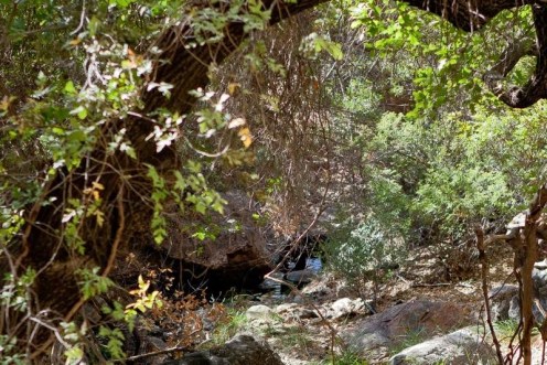 as we entered the lush oasis lining the small stream that carved this canyon, carol came running up to erik, terrified.