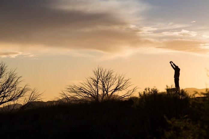 People can add a new set of emotions to an image that without them is much harder to achieve. The man below, craning to capture the gorgeous sunset on his phone is universally understood and relatable.