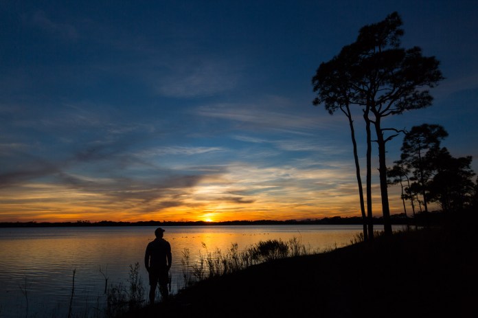 The lone man (or couple in love) quietly standing in awe and contemplation of the beautiful sunset before them (see images below).